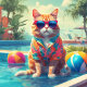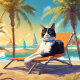 Manta Sherpa Gato lindo con gafas de sol de vacaciones