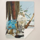 Un gato del bosque noruego sentado junto a un árbol con un dragón azul sentado en un casco de botella. Nieve a su alrededor, espada y hacha viruela con ellos.