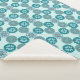 Decorative modern floral geometric patterned blanket in shades of blue/teal.