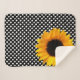 Funda Sherpa bonito con un patrón de puntos polka en blanco y negro, en la parte delantera, y gráficos de un gran girasol amarillo, en la parte inferior. Personalizar para agregar su propio texto. Bonita idea de regalo para ella.
