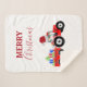 Un lindo ilustracion de un camión de Navidades rojos usando un sombrero de Papá Noel y decorado con luces de Navidades que remolcan un vagón lleno de regalos de Navidades. Perfecto para niños y chicas que aman tractores, camiones, maquinaria pesada, la agricultura o simplemente les encanta jugar con camiones de juguete. Una manta ideal de Navidades para los entusiastas de camiones tractores grandes o pequeños, chicas o niños.