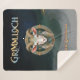 Wrap yourself in warmth and dark fantasy style with this Grimmloch sherpa blanket, featuring the official emblem of the narrative-based RPG by Opulent Code LLC. The detailed horned goat crest, set against rich teal and gold tones, creates a bold and immersive design that stands out beautifully on the smooth front.