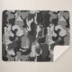 Una blanda manta Sherpa para los amantes del gato. Patrón de camuflaje gris con gatos y gatitos lindos, divertidos y geniales. ©Jenn Inashvili
