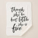 Elegante manta literaria con escritura de pincel negro de la cita "aunque sea pequeña es feroz" de A MidSummer Night's Dream de William Shakespeare con un fondo blanco. *Tenga en cuenta que la marca de agua Zazzle que aparece en la vista previa del zoom NO aparecerá en el producto impreso final. © Rosewood y Citrus