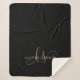 Moderno Guión Femenino de Oro Negro Monogramado Sherpa Blanket. Personalice fácilmente esta elegante y moderna manta sherpa con su monograma y nombre personalizado.