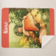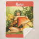 Hadas rubias de ojos azules abrazando un hongo amanita grande al personalizar con tu propio saludo, nombre, mensaje, etc