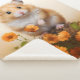 Esta manta cuenta con un ilustracion de un hámster parado en sus patas traseras entre flores naranjas. Una manta ideal para cualquier amante de los hámsters. contenido generativo