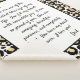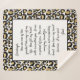 Esta gran manta de 50 x 60 con palabras amorosas y un borde de impresión de leopardo negro y dorado es una buena manera de decirle a tu hija cuánto la amas y lo increíble que es. A ella le encantará envolver tu amor y sentirá la calidez de tu presencia aunque no estés cerca de ella. ¿Qué hija no quiere estar llena de confianza porque sabe que es profundamente amada y atesorada por su madre/padre? Todo es personalizable. Usted elige el mensaje y la firma. Obtén uno por cada una de tus hijas. ¡Realmente les encantará! Para tu información: puedes elegir cualquier color de fondo seleccionando "Personalizar esta plantilla", después "Personalizar más" y después "Fondo" y después "editar" y después "+"...esto le permitirá desplazarse por todos los colores - sólo tiene que mover el punto para elegir el color deseado.
