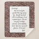 Esta gran manta de 50 x 60 con palabras amorosas y un borde de impresión de leopardo de oro negro y rosa es una buena manera de decirle a tu hija lo mucho que la amas y lo increíble que es. A ella le encantará envolver tu amor y sentirá la calidez de tu presencia aunque no estés cerca de ella. ¿Qué hija no quiere estar llena de confianza porque sabe que es profundamente amada y atesorada por su madre/padre? Todo es personalizable. Usted elige el mensaje y la firma. Obtén uno por cada una de tus hijas. ¡Realmente les encantará!