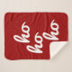 Ilustracion de diseño de texto Ho-ho-ho con letras blancas sobre fondo rojo para Navidades. Es posible cambiar el color de fondo y añadir uno diferente al diseño con su elección.