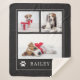 Esta sencilla y elegante manta sherpa cuenta con tres de tus fotos favoritas de tu perro o gato mascota, con dos tiras de pata bonitas. El fondo es un elegante, oscuro carbón vegetal (casi negro) con texto blanco moderno. ¡El regalo perfecto para los amantes de las mascotas!