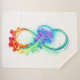 Símbolo infinito multicolor con medusa brillante arcoiris decorado con largos tentáculos sobre fondo blanco. Mariscas arcoiris.