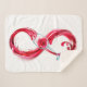 Símbolo infinito de flujo continuo de vino tinto vertiendo en vidrio de vidrio sobre fondo blanco.