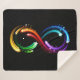 Symbol of infinity is artistically painted with fast moving, bright, luminous, rainbow colored comets with long flexible tails on black background. Rainbow infinity.
