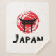 Ilustracion japonés de diseño de texto con sol rojo grueso y decoración de la puerta Torii para todos los que les gusta viajar