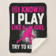Juego de hockey Como una manta de sherpa Chica, con una silueta de hockey y lecturas de texto Sé que juego como un Chica ¡Intenta mantenerme al día!