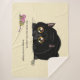 El gato negro está a punto de saltar y hacer la "maniobra de gatitos". Ratón de juguete cerca del gato negro.