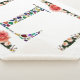 La letra inicial "L" está hecha con imágenes de guijarros en todas las formas y colores, como zafiro oval, esmeralda en forma de corazón, rubí, diamantes, etc.