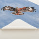 Una elegante cometa roja huyendo contra un cielo nublado de verano. Personalizar añadiendo su propio texto La cometa roja (Milvus milvus) se salvó de la extinción nacional en el Reino Unido y se ha reintroducido en Inglaterra y Escocia.