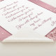 Esta gran manta de 60 x 80 con palabras de amor y un borde purpurina oscuro de oro rosa es una buena manera de decirle a su hija cuánto la amas. A ella le encantará envolver tu amor y sentirá la calidez de tu presencia aunque no estés cerca de ella. ¿Qué hija no quiere saber que es profundamente amada y atesorada por su madre/padre? Todo es personalizable. Usted elige el mensaje y la firma. Obtén uno por cada una de tus hijas. ¡Realmente les encantará!