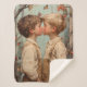 Una escena cálida y tierna que muestra a dos muchachos compartiendo un beso inocente en medio de un telón de fondo de ramas cargadas de manzanas y mariposas revoloteadoras. Capturada en un estilo que recuerda a Norman Rockwell y J.C. Leyendecker, esta obra de arte exuda encanto y nostalgia, celebrando la pureza y belleza de la infancia.