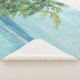 "Blue Coastal Lagoon" por Suzanne Wilkins. Cuenta con una tranquila playa con árboles tropicales.
