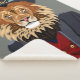 Este retrato de las características del diseño de un león en el traje de negocios y el gorra de un hombre.
