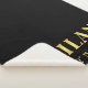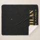 El diseño de la manta de Lux Sherpa incluye la ciudad de Milán, las coordenadas del mapa de latitud y longitud de Italia en fuentes doradas sobre fondo negro.