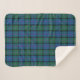 Bonita manta de lana Sherpa blanda con el frente hecho en el clásico patrón de lona tartan de MacThomas de los clanes verde, azul y negro escocés. Personalizar esta cómoda manta con tu propio texto. Disponible en tres tamaños.