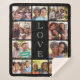 Un collage de fotos mantiene una manta de sherpa negra que tu madre valorará y disfrutará durante años. Personalice con diez fotos de sus hijos, nietos, familia, mascotas, etc. "LOVE" está escrito en el medio con elegante tipografía blanca.