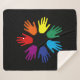 Diseño de paz con decoración de manos color arcoiris en forma redonda