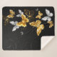 Oro, joyas y mariposas blancas sobre fondo negro. Mariposa dorada.
