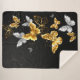 Oro, joyas y mariposas blancas sobre fondo negro. Mariposa dorada.