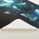 Mariposas brillantes nocturnas de menta sobre fondo abstracto negro.