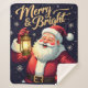 Manta Sherpa Merry Bright Santa Holding Lantern Illustration