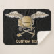 Mezclador de hormigón beige con alas, pickaxe y pala. Texto personalizado.