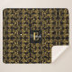 Manta Sherpa Moda Monogramed Golden Floral sobre negro