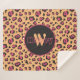 Manta Sherpa Monograma de impresión de leopardo negro rosado