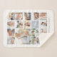 Personalizar esta manta de sherpa suave con 16 fotos cuadradas dispuestas en un diseño de collage de rejilla, con una imagen grande y el resto pequeño. Su monograma inicial aparece en un cuadrado gris claro en la parte inferior derecha. Añada el nombre de su familia o la leyenda del personalizado en la parte inferior con letras grises de moda.