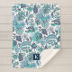 manta de sherpa monogramada personalizado con un patrón floral vintage en tonos azules y blancos. Personalízalo con tu monograma inicial en un marco cuadrado oscuro de la marina. Utilice las herramientas de diseño para editar los tipos de letra y los colores del texto y agregue sus propias fotos para crear un diseño único.