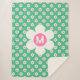 Manta Sherpa Monograma Personalizado Retro Daisies rosa y verde