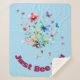 Manta Sherpa Monograma simple de acuarela floral sobre azul