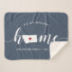 Muestra algo de orgullo en el estado de casa con esta linda manta rústica de tiros azules con letras en letras de caligrafía blanca como "casa" con un mapa de siluetas del estado de Montana parado en la letra "O". Un ilustracion de corazón rojo dentro del mapa de estado completa el diseño; puedes cambiar la posición del corazón a tu ciudad natal abriendo la herramienta de diseño y arrastrando la forma del corazón a tu sitio favorito. Personalice con su ciudad natal, nombre de familia y año establecido para crear un regalo de bienvenida perfecto y memorable o para su nuevo hogar.