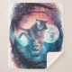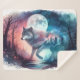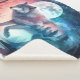 A luminous wolf glides through a surreal forest, its translucent form merging with moonlight, bare trees, and pine silhouettes. The landscape shifts from warm pinks and purples to cool blues and teals, creating a twilight gradient that feels both earthly and otherworldly. Reflections shimmer in the water below, echoing the celestial glow of the moon above. This artwork evokes themes of inner strength, quiet transformation, and the sacred bond between nature and spirit.