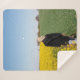 Manta Sherpa Mujer con abrigo negro sobre un campo de hierba ve