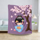 Manta Sherpa Muñeca Maiko Kokeshi - Chica Geisha de Kimono Azul
