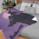 Wrap yourself in mystical comfort with this moonlit witch blanket. The soft silhouette and celestial tones make it ideal for cozy nights filled with dreams and magic. This enchanting design features the silhouette of a witch sitting peacefully on a cliff under a glowing full moon. Set against a dreamy purple night sky filled with stars and soft clouds, this minimalist witchy artwork radiates calm, strength, and a touch of magic. Perfect for lovers of mystical aesthetics, moon magic, witches, and celestial vibes.