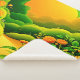 Explore un ilustracion paisajístico vibrante y estilizado con colinas verdes, flores naranjas y fruta, bañado por el resplandor de un gran sol (Este diseño hecho con IA). ¡Haga el pedido hoy y acepte la alegría de ir de compras!