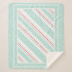 Este acogedor diseño de manta Sherpa Navidad presenta rayas diagonales en verde menta, blanco y rojo sobre un fondo verde menta salpicado de copos de nieve y estrellas. Busque ID440 para ver otros productos de coordinación y opciones de color adicionales para este diseño.
