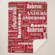 ¡Cubra usted mismo con su propio nombre familiar con este Navidad rojo repitiendo el nombre de una manta personalizada de rojo, blanco y verde con un patrón de graffiti de nombre en varios tipos de letra! Este regalo único es bueno para toda la familia, pero especialmente para los padres y abuelos.